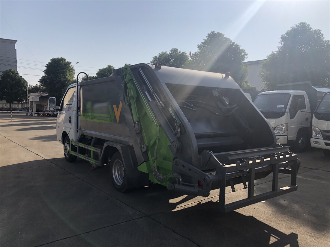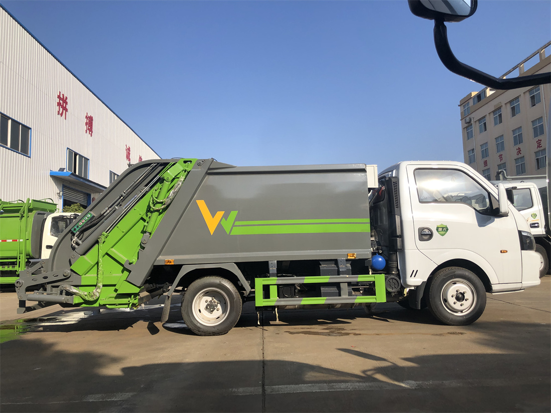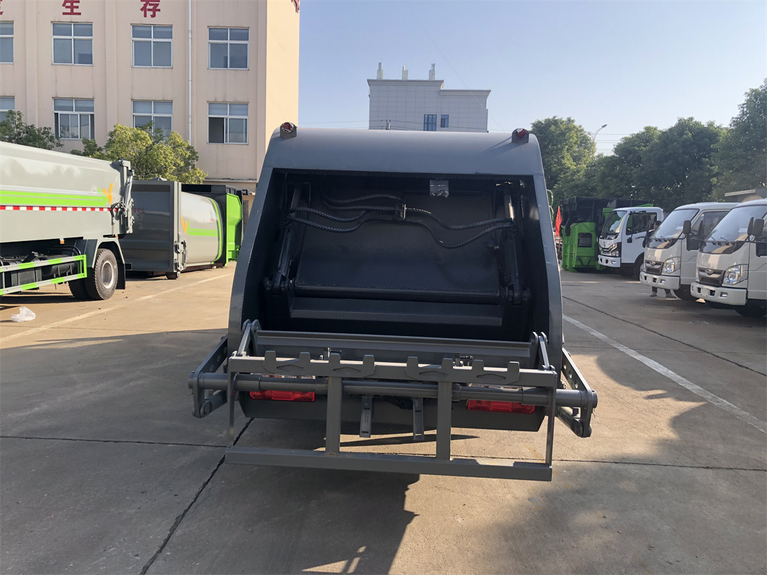 上裝配置:垃圾箱容積:4方,新款平面弧形廂體,廂體材料為武鋼優(yōu)質(zhì)碳鋼,PLC一鍵操作**,手電一體操作模式,兩側(cè)雙電控,帶駕駛室內(nèi)操作,底板支撐加強(qiáng),雙向壓縮,開(kāi)放式易清潔污水箱。壓縮式垃圾車(chē)采用機(jī)電液一體化技術(shù),借助機(jī)、電、液聯(lián)合自動(dòng)**系統(tǒng)、電腦**、手動(dòng)操作系統(tǒng),通過(guò)填裝器和推鏟等專(zhuān)用裝置,實(shí)現(xiàn)垃圾倒入、壓碎或壓扁、強(qiáng)力裝填,把垃圾擠入車(chē)廂并壓實(shí)和推卸,污水全部進(jìn)入污水廂,解決了垃圾運(yùn)輸過(guò)程中的二次污染的問(wèn)題。壓縮式垃圾車(chē)具有自動(dòng)反復(fù)壓縮以及蠕動(dòng)壓縮功能,壓縮比高、密封性好、裝載量大﹑操作方便、環(huán)保性好﹑整車(chē)?yán)霉β矢叩葍?yōu)點(diǎn)。作業(yè)自動(dòng)化,垃圾收集方式簡(jiǎn)便、高效。后翻轉(zhuǎn)機(jī)構(gòu)選裝:1、掛塑料桶式翻轉(zhuǎn)機(jī)構(gòu);2、掛鐵桶式翻轉(zhuǎn)機(jī)構(gòu);3、擺臂式翻轉(zhuǎn)機(jī)構(gòu); 4、簸箕斗式翻轉(zhuǎn)機(jī)構(gòu)。