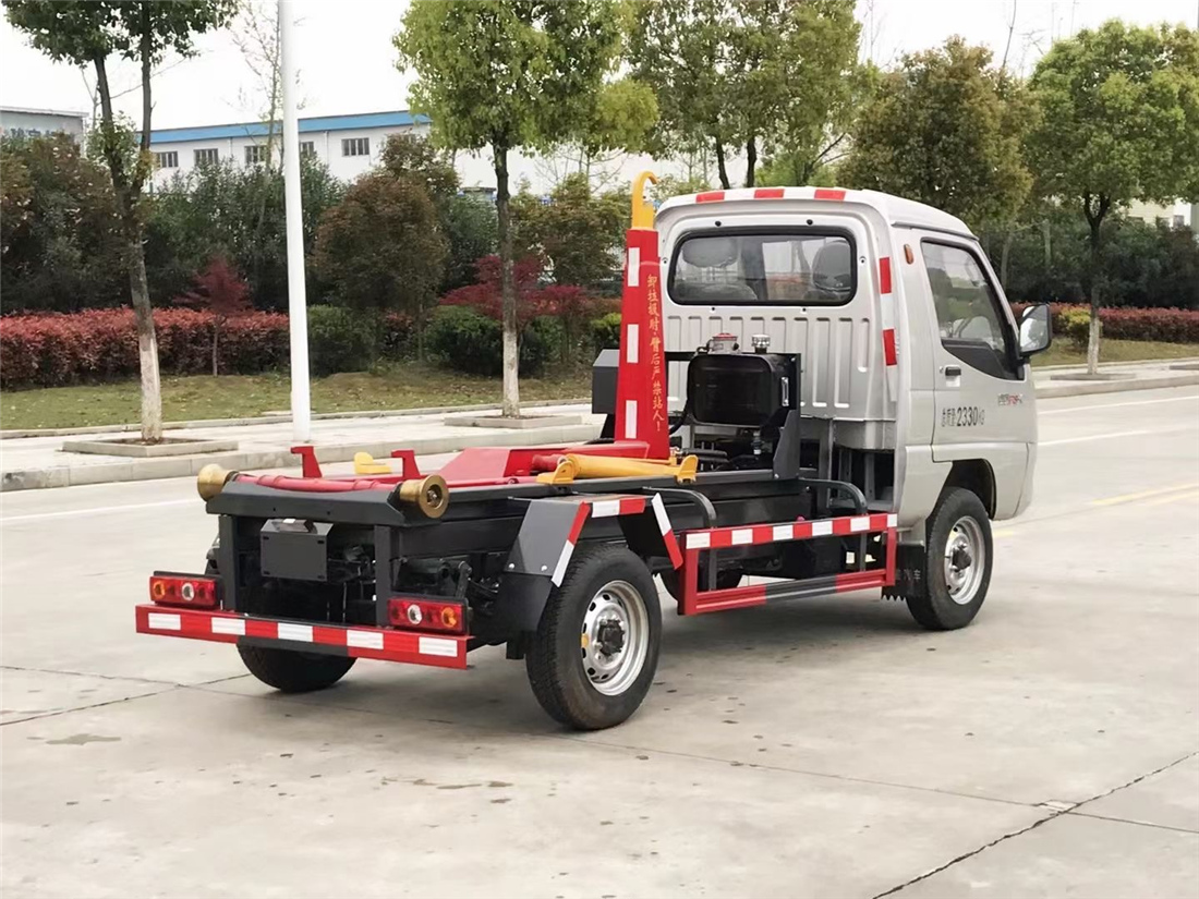 勾臂式垃圾車(車廂可卸式垃圾車)介紹: 車廂可卸式垃圾車又叫拉臂式垃圾車,是一種采用高新設(shè)計可伸縮的鉤臂,實現(xiàn)垃圾廂的二次吊裝,自吊上放下,可自行傾倒垃圾的環(huán)衛(wèi)設(shè)備。 拉臂式垃圾車結(jié)構(gòu)簡單,操作穩(wěn)定方便,裝卸效率高,機械化程度高,節(jié)省人力。鉤臂垃圾車一車可帶多個垃圾廂,在裝卸的運輸過程中可有效地避免二次污染。 拉臂垃圾車采用高新設(shè)計可擺動的鉤臂,垃圾箱由框架、開啟油缸、滑輪、后門和若干加強框架與鋼板焊接而成。調(diào)換貨廂快捷方便,貨廂上帶蓋(倒垃圾時可翻開),鉤臂垃圾車?yán)鴰w可選用碳鋼、不銹鋼材質(zhì)、內(nèi)部采取環(huán)氧樹脂防腐處理,改裝部分與原車底盤為可分離式,維修方便且保持了原車的機動性及行駛性能。