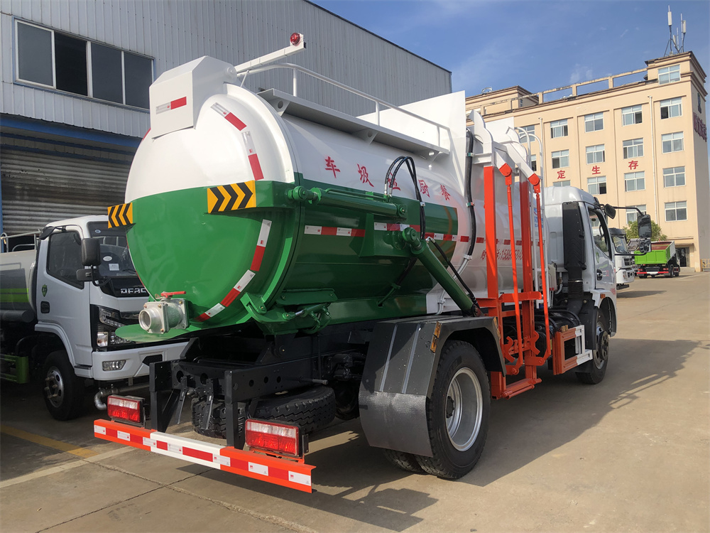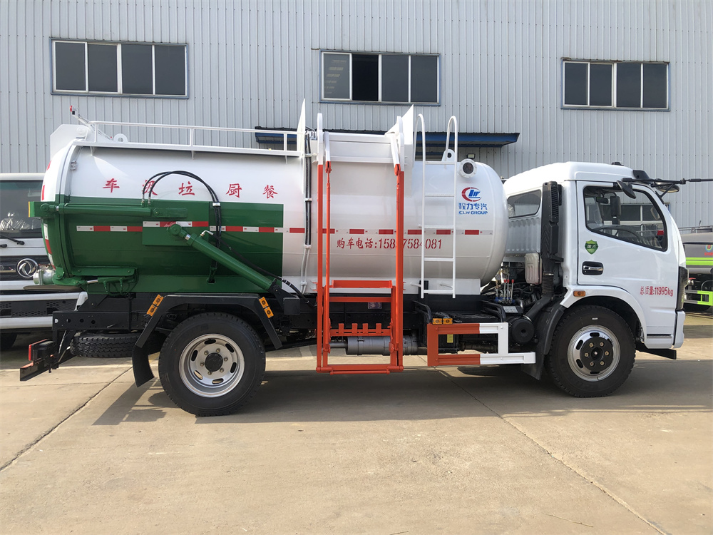 上裝配置:罐體容積8m3,配備120L/240L掛桶提升翻轉(zhuǎn)機構(gòu),液壓系統(tǒng),后蓋液壓鎖緊開啟,罐體可以舉升自卸,尾部帶自流閥;用于運輸液態(tài)垃圾,其特點操作簡單,密封性好,無泄漏,無異味;可選裝固液分離功能,推板擠壓功能,常用于餐館的垃圾轉(zhuǎn)運處理。