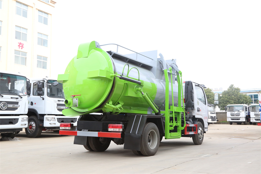 上裝配置:罐體容積6m3,配備120L/240L掛桶提升翻轉(zhuǎn)機(jī)構(gòu),液壓系統(tǒng),后蓋液壓鎖緊開(kāi)啟,罐體可以舉升自卸,尾部帶自流閥;用于運(yùn)輸液態(tài)垃圾,其特點(diǎn)操作簡(jiǎn)單,密封性好,無(wú)泄漏,無(wú)異味;可選裝固液分離功能,推板擠壓功能,常用于餐館的垃圾轉(zhuǎn)運(yùn)處理。