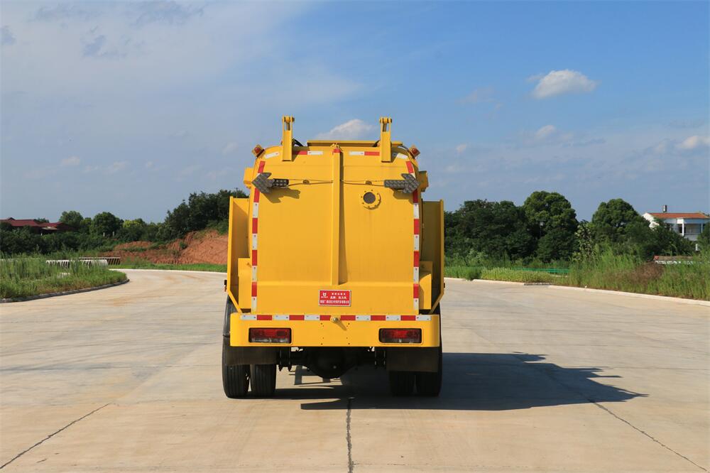 上裝配置:罐體容積8m3,配備120L/240L掛桶提升翻轉機構,液壓系統,后蓋液壓鎖緊開啟,罐體可以舉升自卸,尾部帶自流閥;用于運輸液態垃圾,其特點操作簡單,密封性好,無泄漏,無異味;可選裝固液分離功能,推板擠壓功能,常用于餐館的垃圾轉運處理。