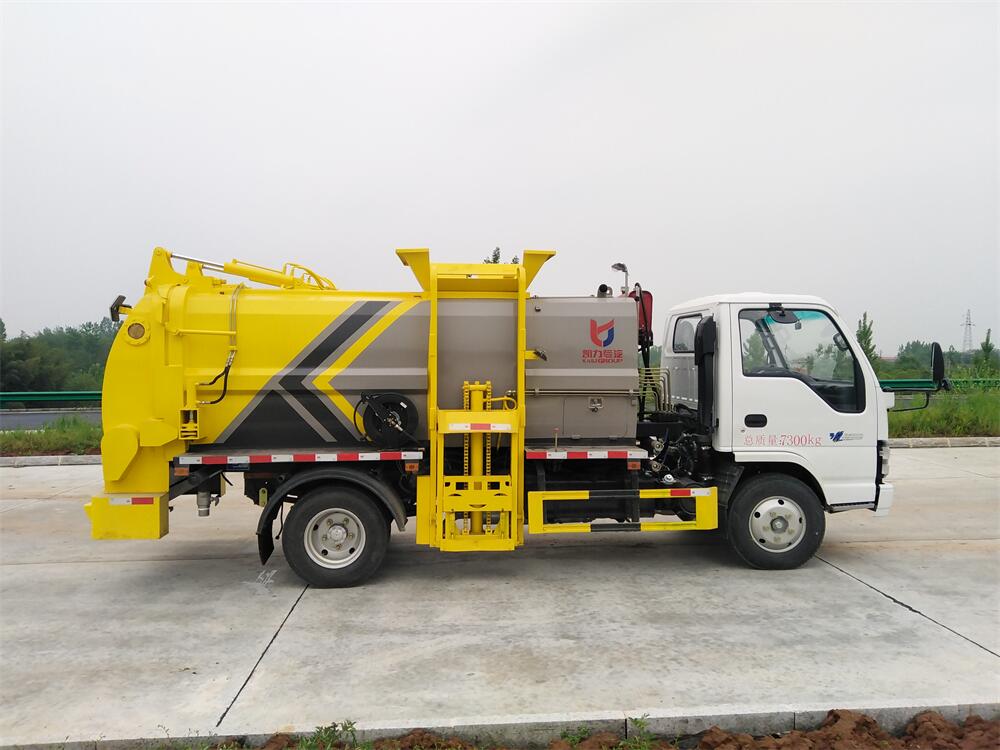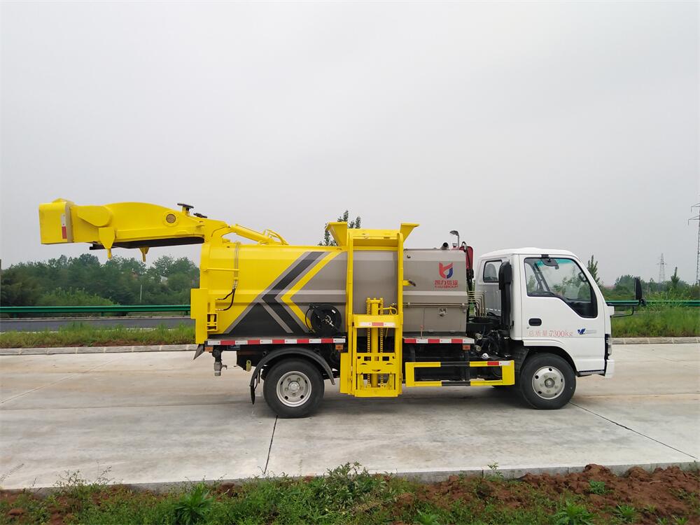 上裝配置:罐體容積6m3,配備120L/240L掛桶提升翻轉(zhuǎn)機(jī)構(gòu),液壓系統(tǒng),后蓋液壓鎖緊開啟,罐體可以舉升自卸,尾部帶自流閥;用于運(yùn)輸液態(tài)垃圾,其特點(diǎn)操作簡(jiǎn)單,密封性好,無泄漏,無異味;可選裝固液分離功能,推板擠壓功能,常用于餐館的垃圾轉(zhuǎn)運(yùn)處理。