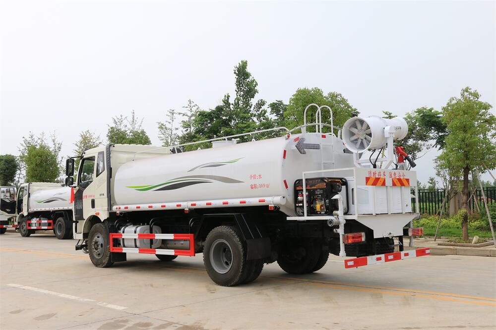 主要由發動機帶動變速箱,變速箱上安裝的取力器帶動灑水泵,灑水泵產生動力,將罐體內部的液體通過管網噴灑出去。工作范圍:自吸高度:≥7m,灑水寬度:≥14m,**大射程:≥28m;可調節成柱狀,射程≥28m;也可調節成霧狀,射程≥5m。